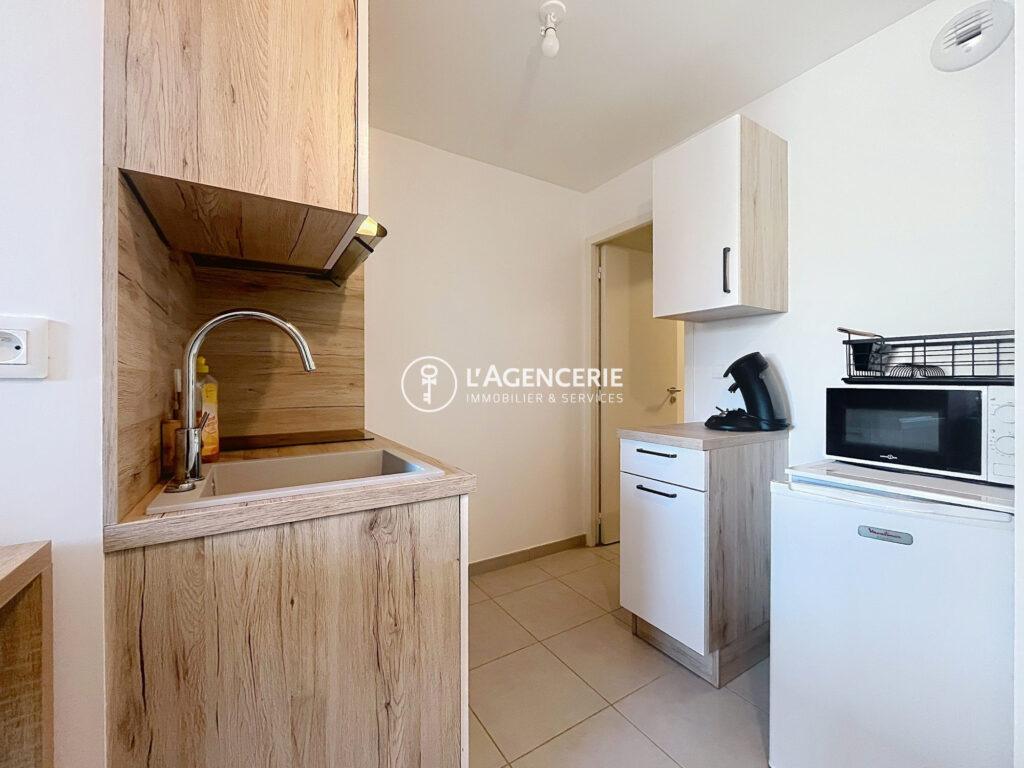 Il se compose d’une pièce à vivre, avec un coin cuisine aménagé et équipé (plaque de cuisson, hotte, réfrigérateur).