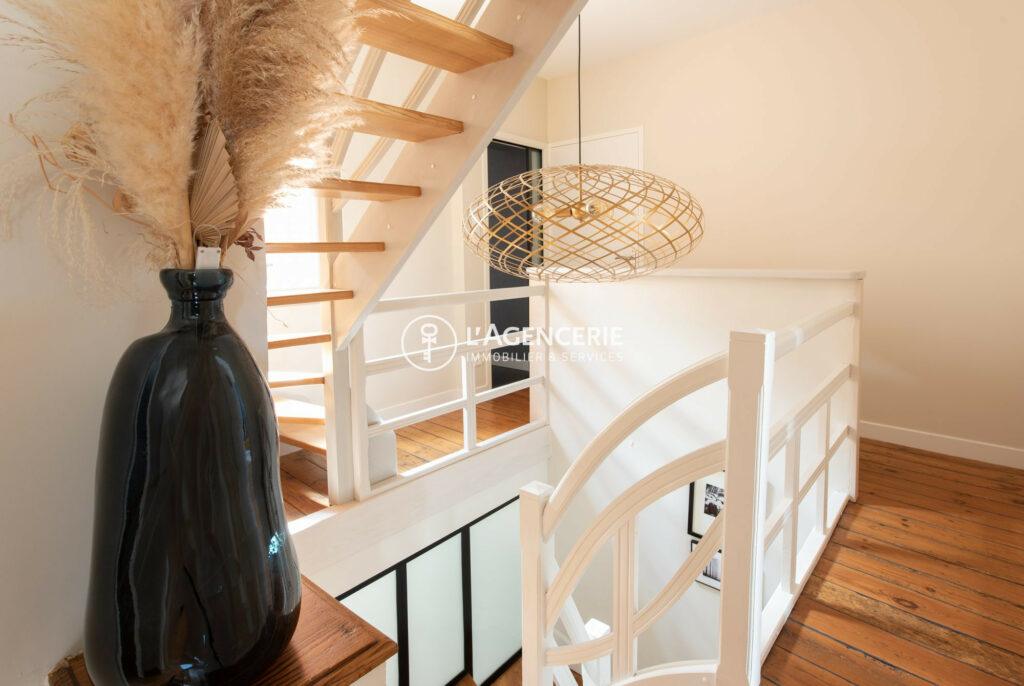 Premier étage : une chambre avec salle d’eau privative, une deuxième chambre, un espace lingerie / dressing, une salle d’eau indépendante ainsi qu’un bureau (pouvant faire office de chambre supplémentaire).