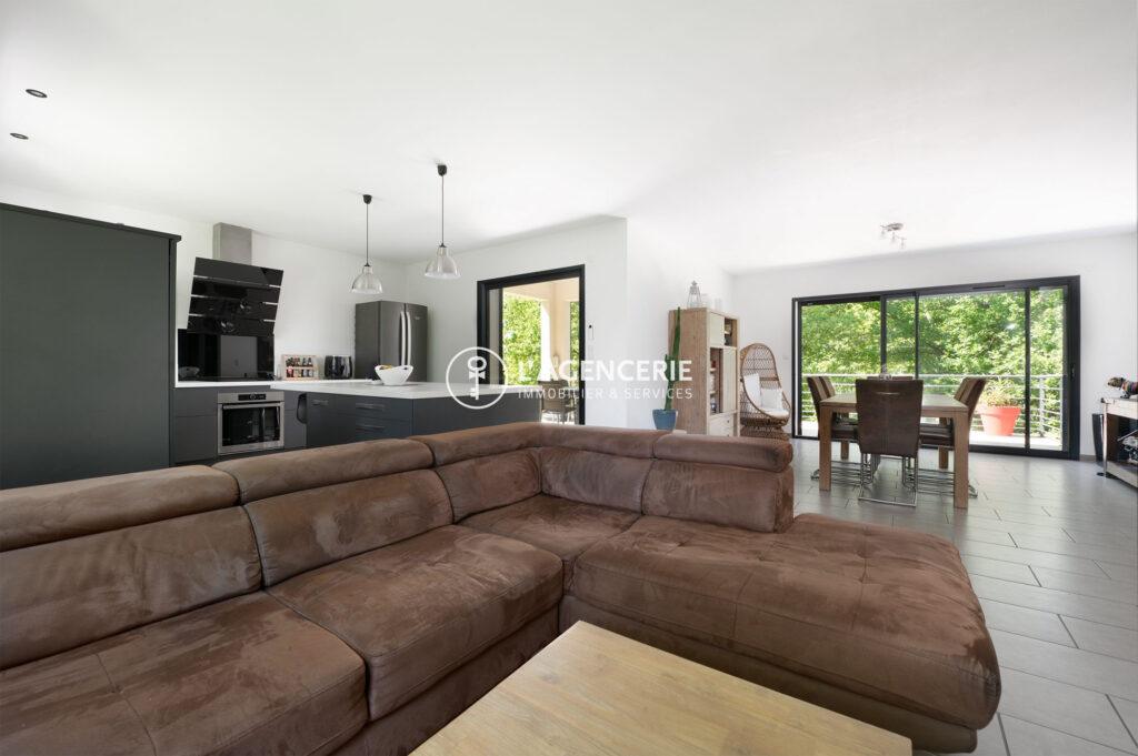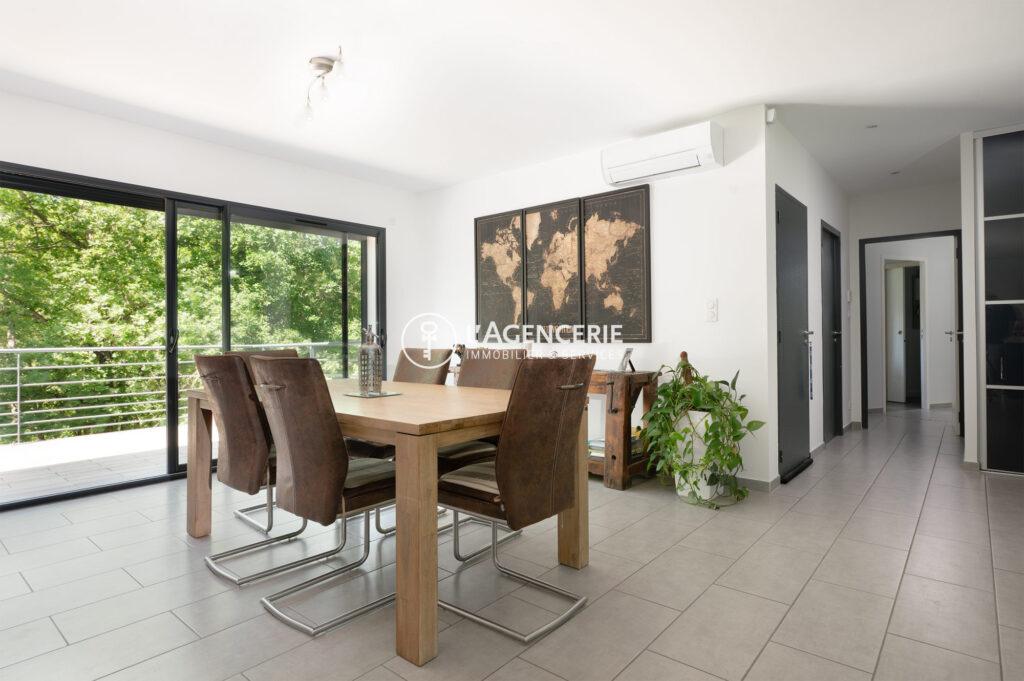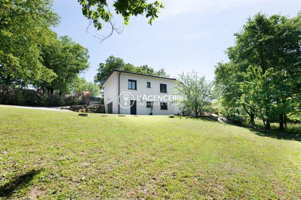 Maison contemporaine construite en 2013, aux lignes modernes et aux prestations soignées, implantée sur une magnifique parcelle arborée avec piscine.