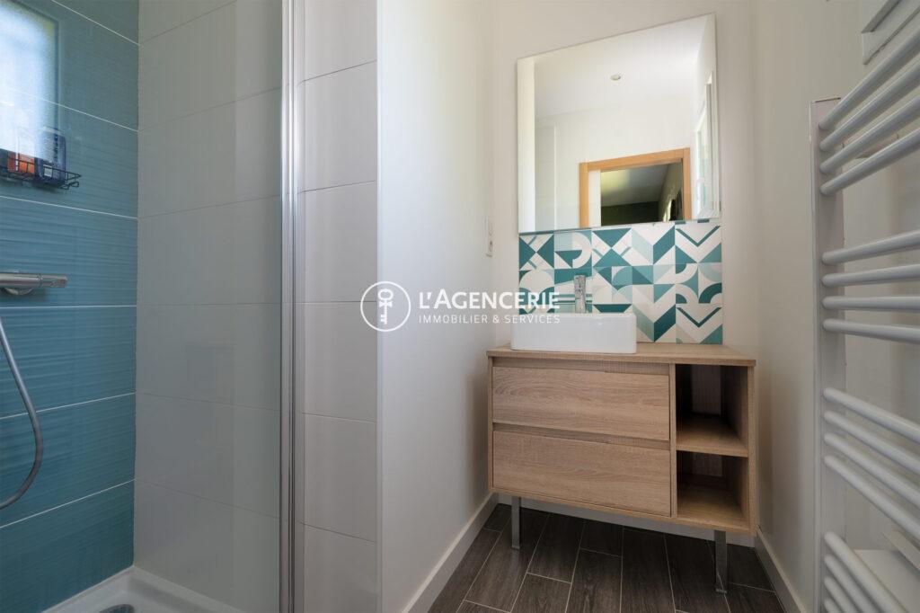 Elle se compose d’une entrée avec placard de rangement, ouvrant sur une spacieuse et lumineuse pièce de vie comprenant un séjour convivial et une cuisine entièrement équipée.