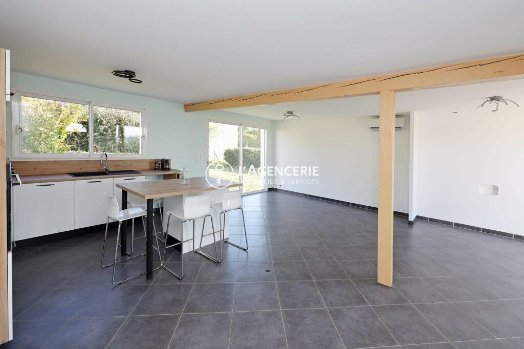 ARTHES – Dans un quartier calme et résidentiel à Arthès, cette villa construite en 2013 offre un cadre de vie agréable, moderne et parfaitement entretenu. D’une surface habitable de 90 m², elle s’articule autour d’une vaste pièce de vie de près de 50 m² comprenant salon, salle à manger et cuisine américaine aménagée et équipée avec îlot central. L’ensemble bénéficie d’une belle luminosité naturelle et s’ouvre directement sur le jardin, créant un lieu de vie convivial et chaleureux.