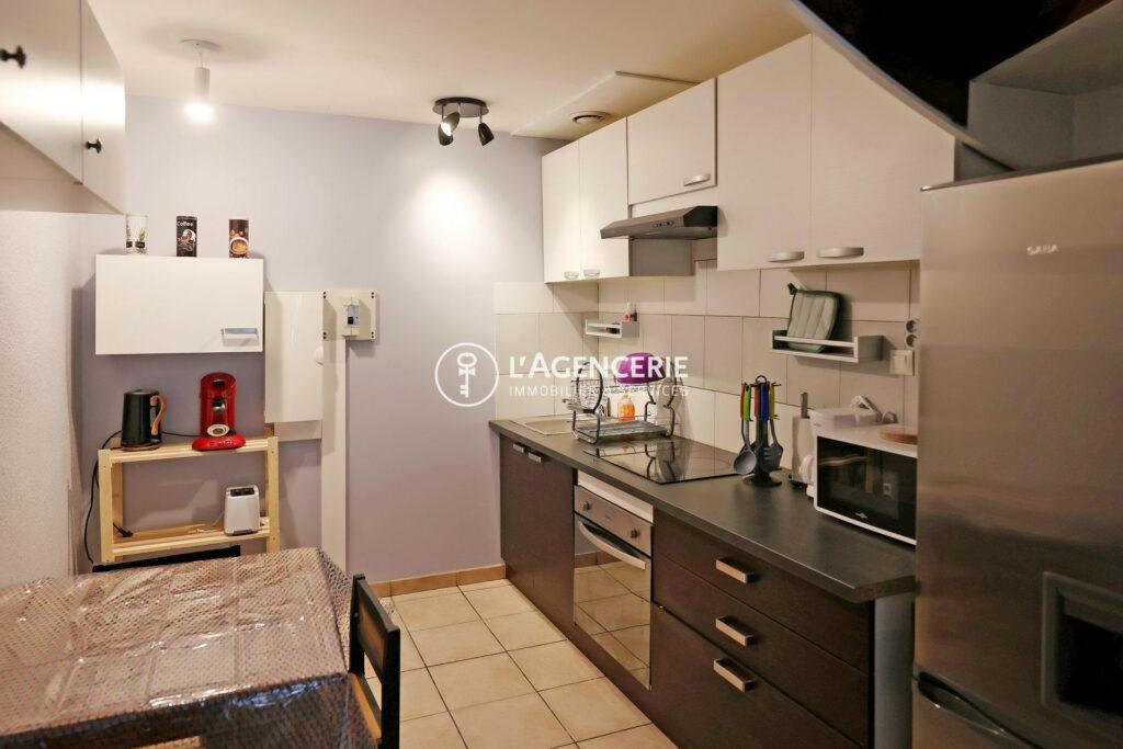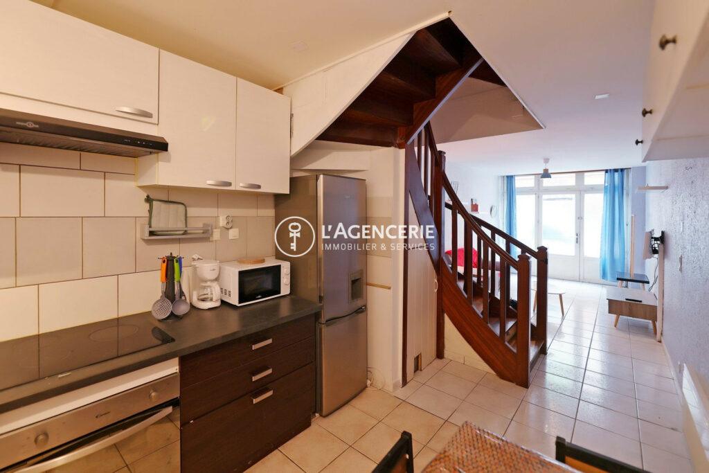cette maison de village entièrement meublée vous offre en rez-de-chaussée une pièce de vie de 24 m² avec un côté salon et une cuisine aménagée et équipée.