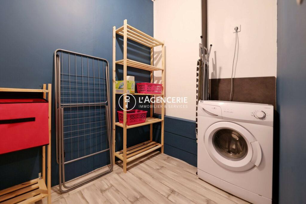 Au premier étage, une chambre de 11.20 m² avec placard de rangement, une buanderie de 4 m² et un toilette séparé.