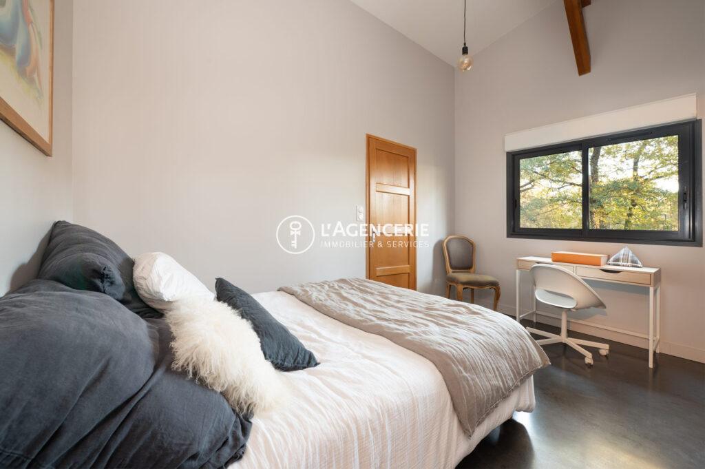 La suite parentale offre un bel espace nuit avec dressing aménagé et salle d’eau privative.