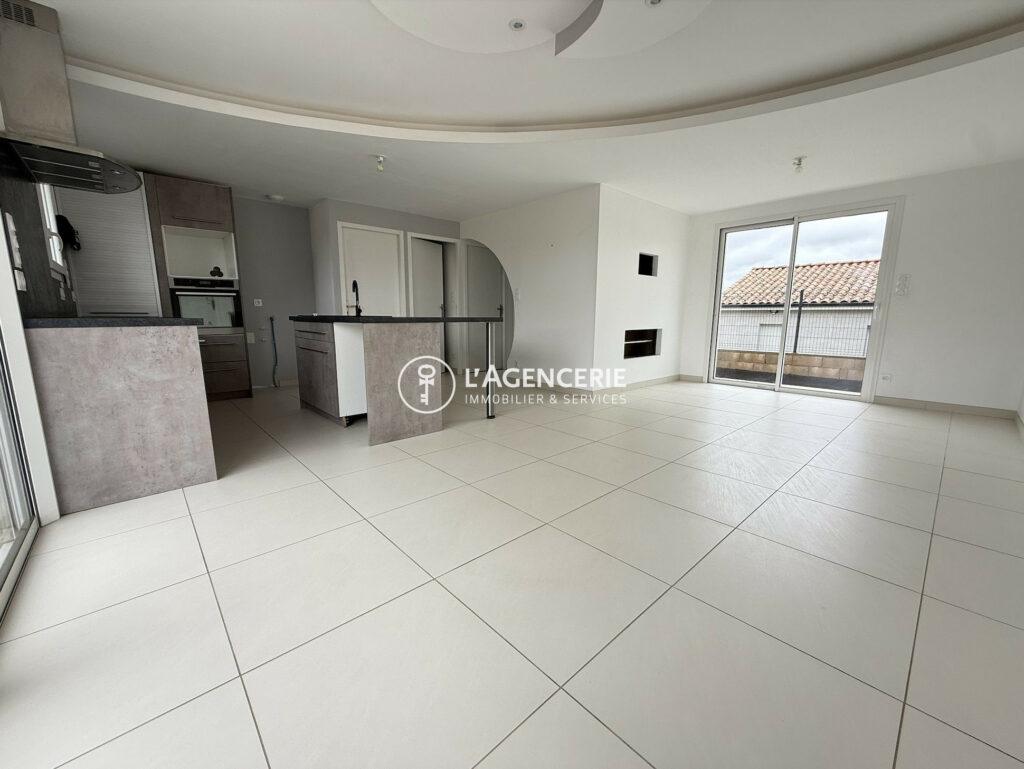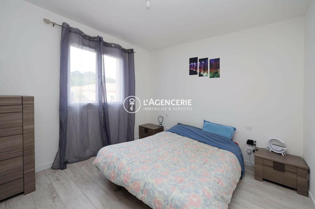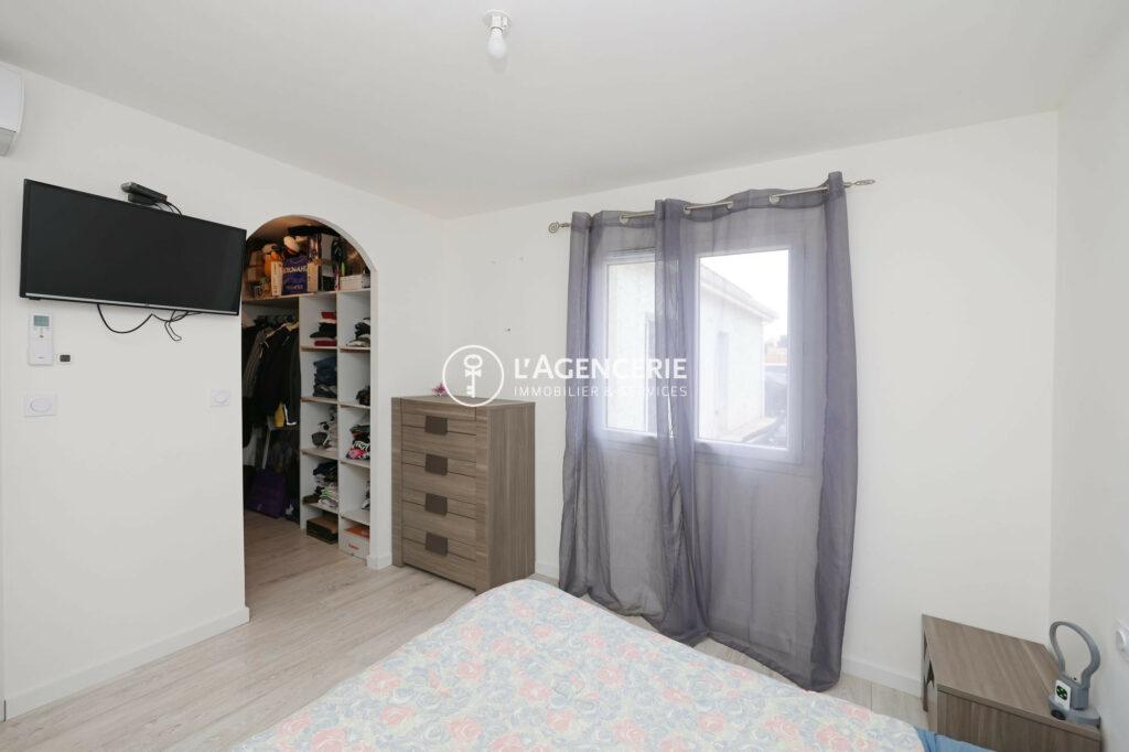 Elle se compose d’une entrée avec dressing, d’une belle pièce de vie lumineuse avec cuisine ouverte entièrement équipée, d’une buanderie, d’un cellier et d’un garage attenant pour plus de praticité.