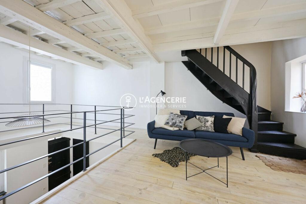 A l’étage, une mezzanine pouvant être aménagée en salon cosy donne accès à une terrasse de 10 m² sans vis à vis.