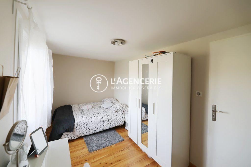 A l’étage, la maison dispose de trois chambres, d’une salle de bain avec une baignoire d’angle, un meuble double vasque, un WC et d’une suite parentale avec une salle d’eau et un WC séparé .