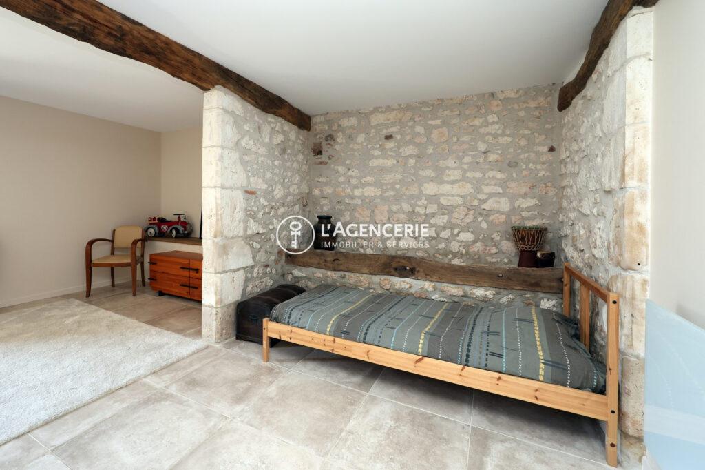 Le rez-de-chaussée propose également une chambre d’amis avec salle d’eau privative et coin dressing (à aménager), idéale pour accueillir famille ou visiteurs dans un cadre indépendant.