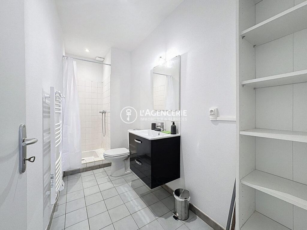 Situé au 1er étage d’une monopropriété calme, ce studio meublé se compose : d’une pièce facilement aménageable selon vos besoins ; d’un coin cuisine aménagé ; d’une salle d’eau, équipé d’une douche et de WC. Conditions de location : – Loyer de 400 euros + 15 euros de charges correspondant à la taxe d’enlèvement des ordures ménagères et lumière des parties communes. – Dépôt de garantie (800 euros) – Honoraires d’agence (198 euros).