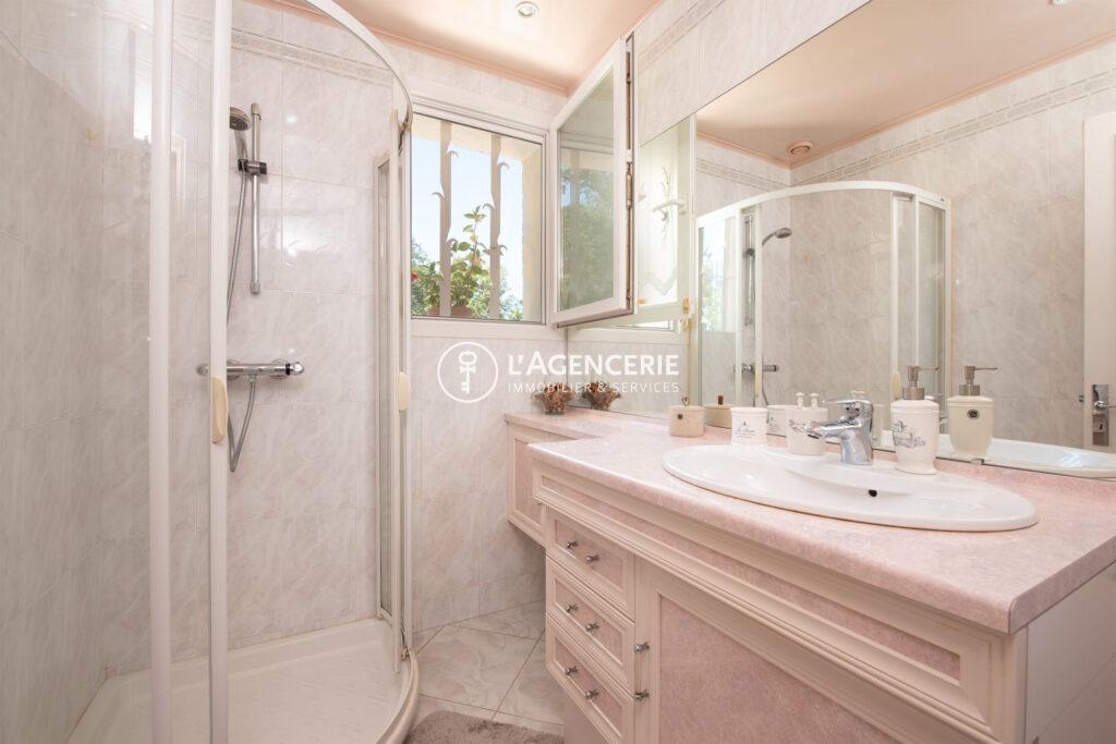 L’espace nuit comprend 4 chambres, dont une spacieuse chambre parentale de plus de 20 m² avec salle d’eau privative et climatisation réversible. Une seconde salle d’eau ainsi qu’une buanderie complètent l’ensemble.